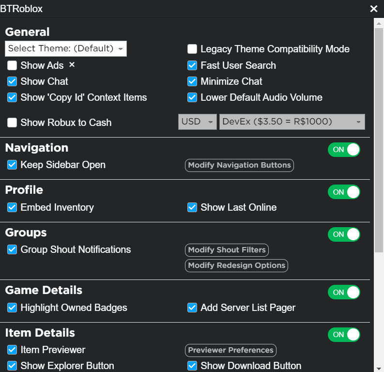 So there are 3 trusted ROBLOX extensions. One of them is epic one is average and one is prefered not to use. So the awesome one or the first one is BTRoblox - Making Roblox Better. Now what this does is on your Roblox website it can give extra customizations. If you are not sure with that you can see the settings here.